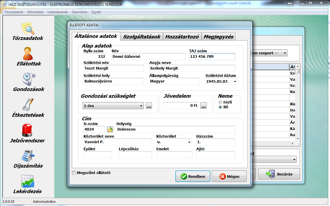 • Gondozottak személyes adatainak, gondozási szükségletüknek, jövedelmüknek és szolgáltatási díjaiknak tárolása, kezelése