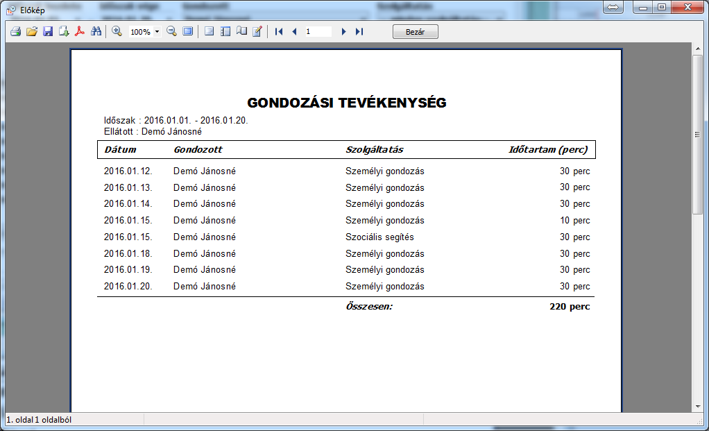 • Gondozási idők tetszőleges szempont szerinti összesítési lehetősége, látogatás-számok kiszámítása